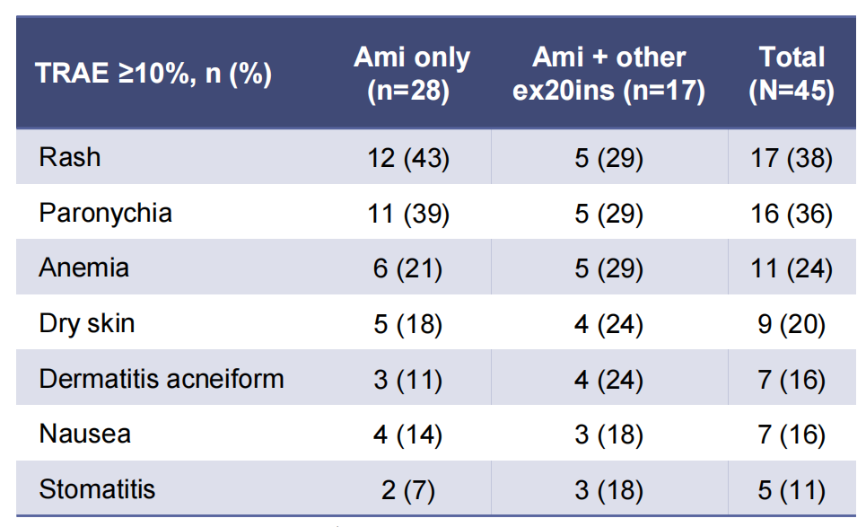 这项研究的次要终点包括无进展生存期(PFS),研究结果显示PFS为9.7个月,考虑到治疗阶段、疾病情况以及既往药物使用,这一结果是非常令人印象深刻的。因此,目前Zipalertinib正在进行一线联合化疗的III期试验,而其他TKI也正在进行III期试验,这潜在地增加了携带外显子20插入突变的NSCLC患者的治疗机会。