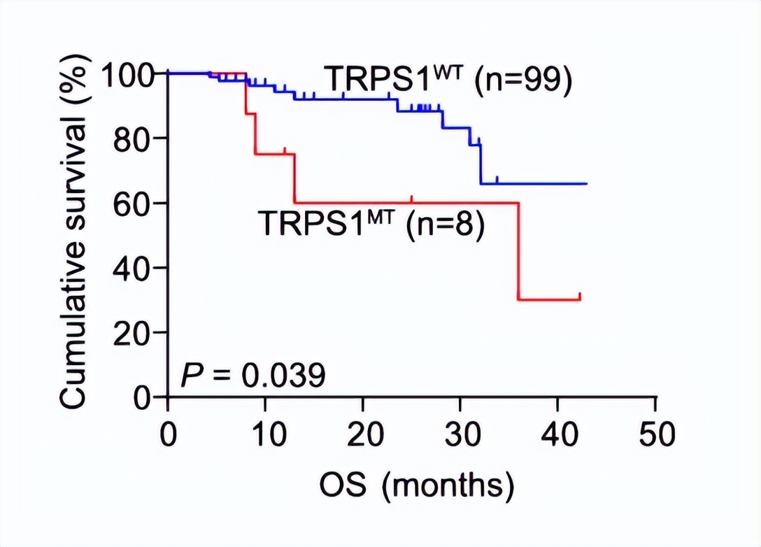 此研究的另一重要发现是TRPS1基因的R544Q突变在肝转移中起到了关键推动作用。在对肿瘤原发灶和转移灶的突变差异分析发现,肝转移灶中TRPS1基因的R544Q突变在肝转移细胞中显著富集,而淋巴转移灶和原发灶并没有。突变后的TRPS1通过与ZEB1启动子结合,并激活其转录表达,从而激活上皮-间质转化(EMT)过程,显著增强了癌细胞的侵袭和迁移能力。体外实验结果及动物实验结果均显示,携带TRPS1 R544Q突变可显著促进结直肠癌细胞转移。进一步对结直肠癌(CRC)患者TRPS1基因表达及其相关因素分析发现,TRPS1突变与病理分期显著相关,且TRPS1突变患者具有较差的无病生存期(DFS)和较差的总生存期(OS)。同时还发现TSR1的表达与KRAS、NRAS、HRAS、BRAF呈弱相关性,但与ZEB1、ZEB2有显著关联。