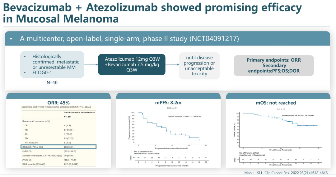 MM在西方人群中较为罕见,但在中国及亚洲患者中有一定的比例,仍存在不小的临床治疗需求。在围手术期治疗方面,尽管免疫治疗在黑色素瘤治疗中取得了巨大成功,但化疗仍然是MM辅助治疗的基石。目前正在探索将抗PD-1联合VEGF-TKI用于MM新辅助治疗。对于晚期MM的治疗,单独使用抗PD-1单药治疗或抗PD-1联合抗CTLA4/LAG3/CTLA4+LAG3显示疗效有限。然而,抗VEGF联合免疫治疗MM则具有较好的治疗活性,期待未来有进一步的扩大样本的前瞻性研究加以验证,并且有其他新型机制的药物用于此类患者的治疗研究中。