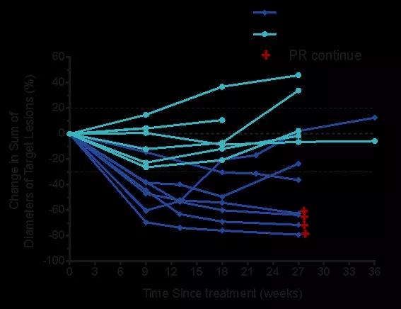 基于肾细胞癌、尿路上皮癌、卵巢癌、子宫内膜癌和宫颈癌5个晚期肿瘤队列的安全性观察和根据RECIST 1.1评估的客观缓解率(ORR)情况,截至2019年6月24日,卵巢癌队列共计入组了24例,组织学证实为复发性上皮卵巢癌、输卵管癌或原发性腹膜癌,既往接受过铂类为基础的治疗、并在末次含铂治疗期间或治疗后6个月内疾病进展,至少有一个可测量的病灶,ECOG评分0-1的患者,接受每3周一次200 mg卡瑞利珠单抗联合每日一次20 mg法米替尼治疗。