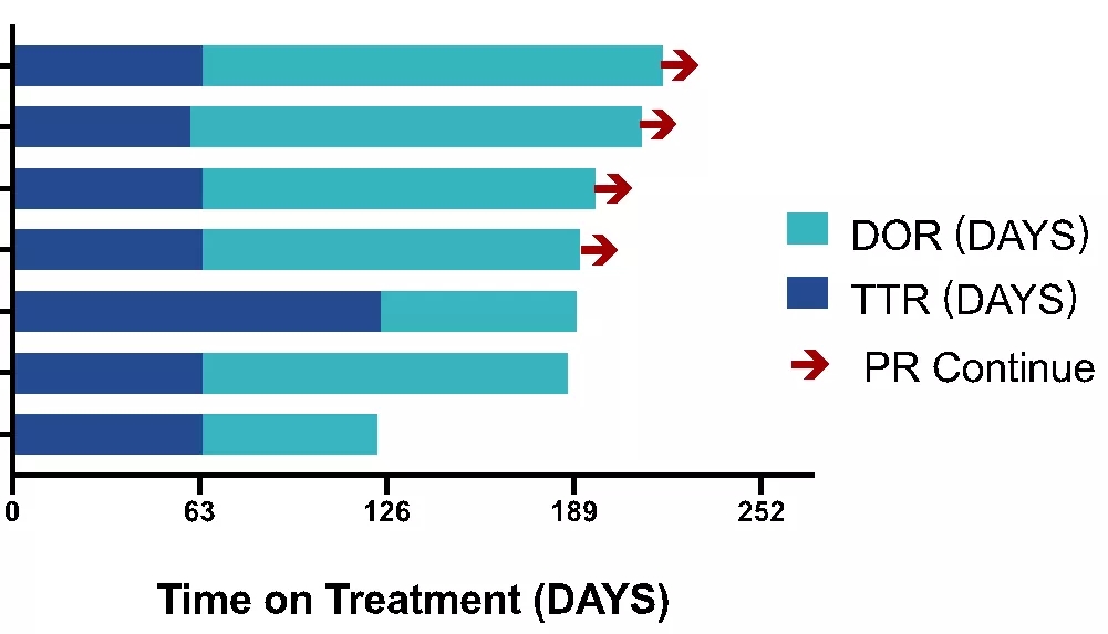 主要研究终点是ORR;次要终点为反应持续时间(DOR)、至肿瘤复发时间(TTR)、无进展生存(PFS)、总生存(OS)、安全性和耐受性;探索性研究终点为PD-L1表达水平、dMMR或MSI-H与临床疗效的相关性。本次会议报道的为其中复发性卵巢癌队列的安全、耐受性及初步疗效结果。