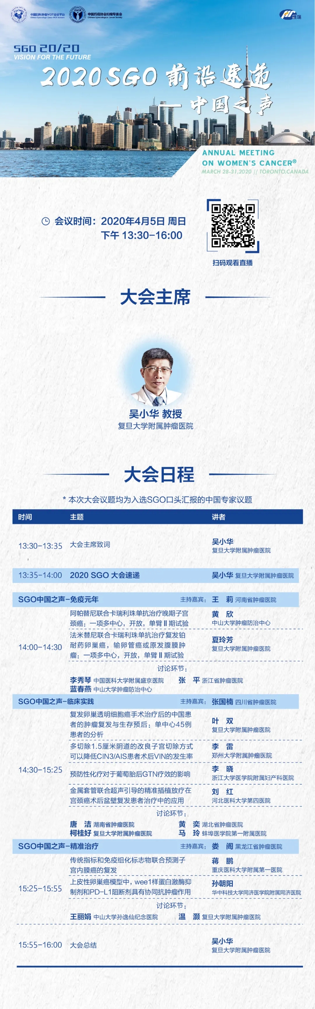 疫情阻挡了线下会议的召开,却无法阻挡中国妇科肿瘤学界的学术热情,4月5日周日下午,中国学者将召开“2020 SGO前沿速递之中国之声”,第一时间传递SGO大会前沿信息以及此次入选SGO口头汇报的中国好声音!