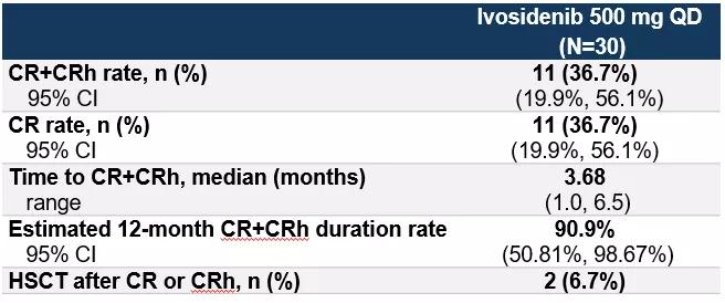 表1、30例患者接受ivosidenib单药口服治疗效果