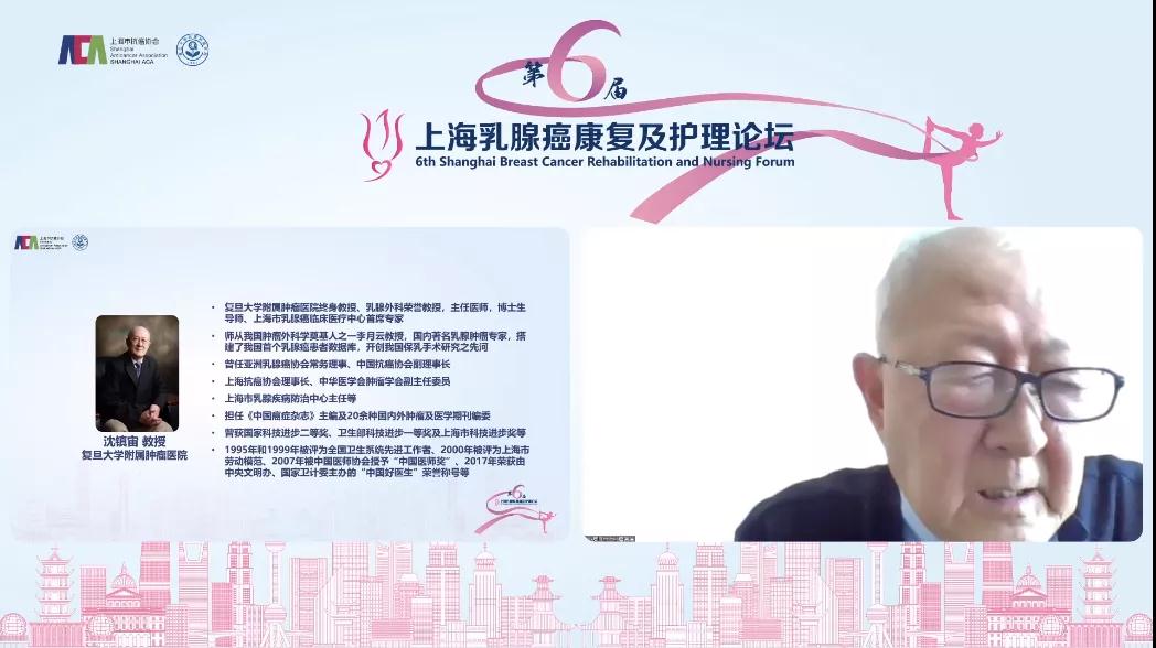 邵志敏教授在致辞中指出,虽然近年来乳腺癌患者新发数量在不断上升,但其治愈率也在不断提高。复旦大学附属肿瘤医院统计数据显示,乳腺癌患者的5年总生存率达到 93.6%,10年总生存率达到82.6%。在患者治疗过程中,康复和护理是重要的议题。在沈镇宙教授的倡导下成立的关注于乳腺癌患者康复护理的“妍康沙龙”,是重要的“医、护、患”三方紧密结合的互助公益团体,该团体十几年来为乳腺癌患者的诊疗、康复等多维度提供了公益服务。希望今后能有更多团体关注于患者的康复及护理,为患者的防-诊-治-康做出更多贡献。