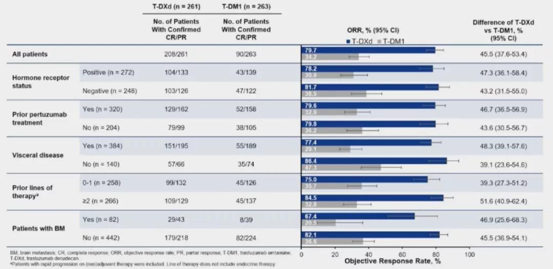DESTINY-Breast03研究PFS和ORR亚组分析