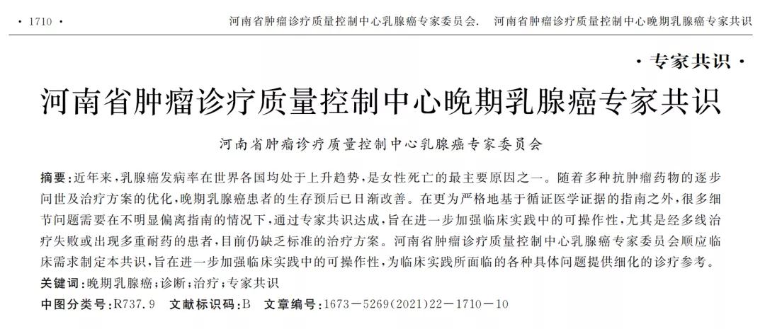 河南省肿瘤诊疗质量控制中心乳腺癌诊疗专家共识