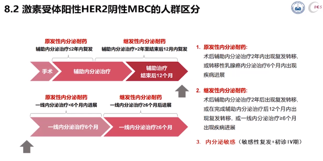 肿瘤瞭望:2021版CBCS乳腺癌指南中,对于HR+/HER2-MBC是如何进行区分的?各类乳腺癌患者是如何进行定义的?患者的治疗应遵循哪些原则?