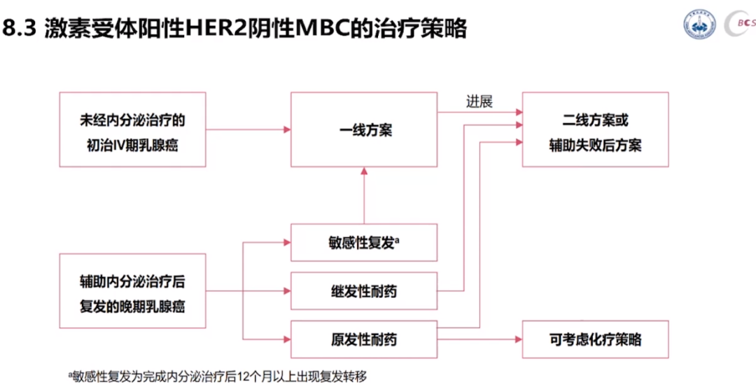 肿瘤瞭望:对于不同类型的HR+/HER2-MBC患者(未经治疗的/治疗后复发的),2021版CBCS乳腺癌指南分别给出的推荐治疗策略为何?如此进行分类有何意义?