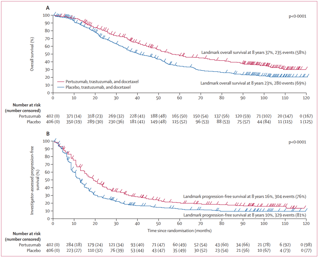 [3]Swain SM, Miles D, Kim SB, et al. Pertuzumab, trastuzumab, and docetaxel for HER2-positive metastatic breast cancer (CLEOPATRA): end-of-study results from a double-blind, randomised, placebo-controlled, phase 3 study. Lancet Oncol. 2020;21(4):519-530.