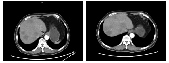 2020.1.5影像学评价:腹部CT:肝脏多发结节,较前增多增大,考虑进展(图3)。
