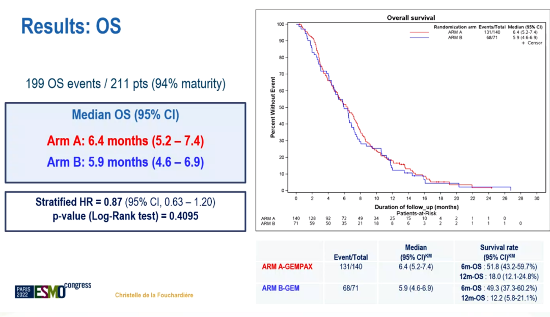 [2]C.de la Fouchardiere et al. Evaluation of gemcitabine and paclitaxel versus gemcitabine alone after FOLFIRINOX failure or intolerance in metastatic pancreatic ductal adenocarcinoma: Results of the randomized phase III PRODIGE 65 - UCGI 36 - GEMPAX UNICANCER study.Annals of Oncology. https://doi.org/10.1016/j.annonc.2022.08.062