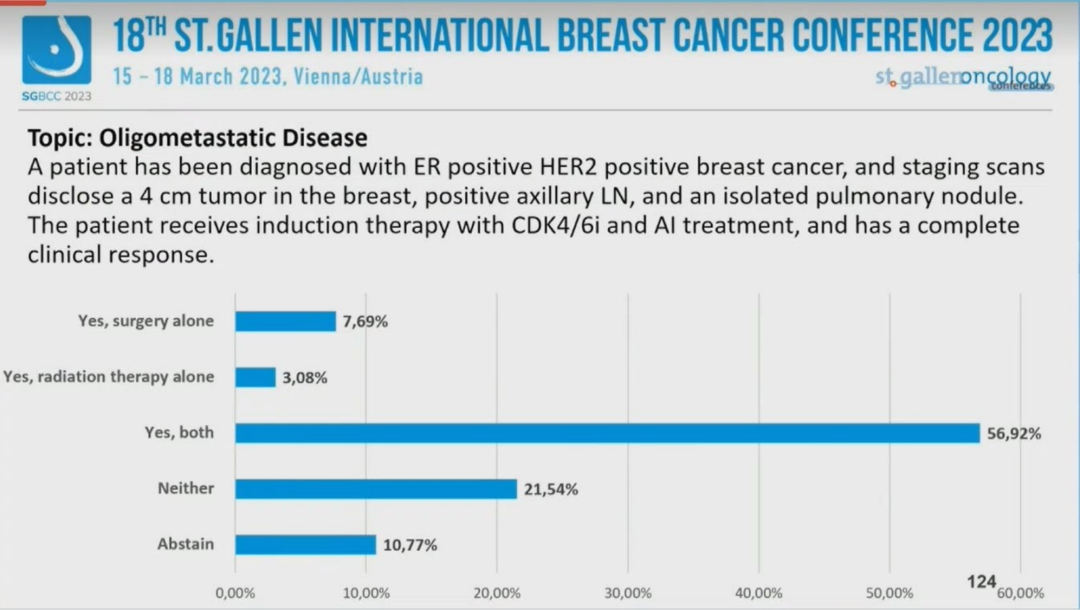 第18届St.Gallen国际乳腺癌大会(SGBCC 2023)于当地时间2023年3月15~18日在“世界音乐之都”维也纳拉举行。大会的最后一天,专家投票压轴登场。《肿瘤瞭望》整理了HER2阳性乳腺癌治疗、BRCA相关治疗、骨改良治疗、寡转移疾病和分子诊断专题的专家投票;并选择其中几个题目供读者投票,一起感受早期乳腺癌治疗决策的圣加仑氛围。