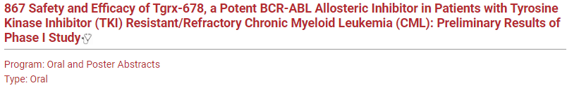 研究结论:该研究结果表明TGRX-678在所有队列均观察到了临床活性,包括T315I在内的多种TKI耐药突变均有疗效,这对于ponatinib或asciminib治疗失败的慢性期或加速期CML患者提供了一种全新的治疗选择。