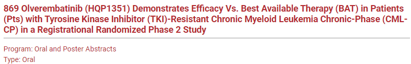 研究结论:对一代和二代TKIs均耐药或不耐受CML-CP患者患者而言,与BAT相比,奥雷巴替尼耐受性更佳、疗效更优。